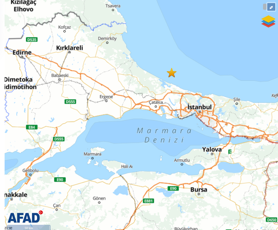 İstanbul’da saat 19.44’te merkez üssü Karadeniz Arnavutköy açıkları olan 3.7 büyüklüğünde deprem meydana geldi.