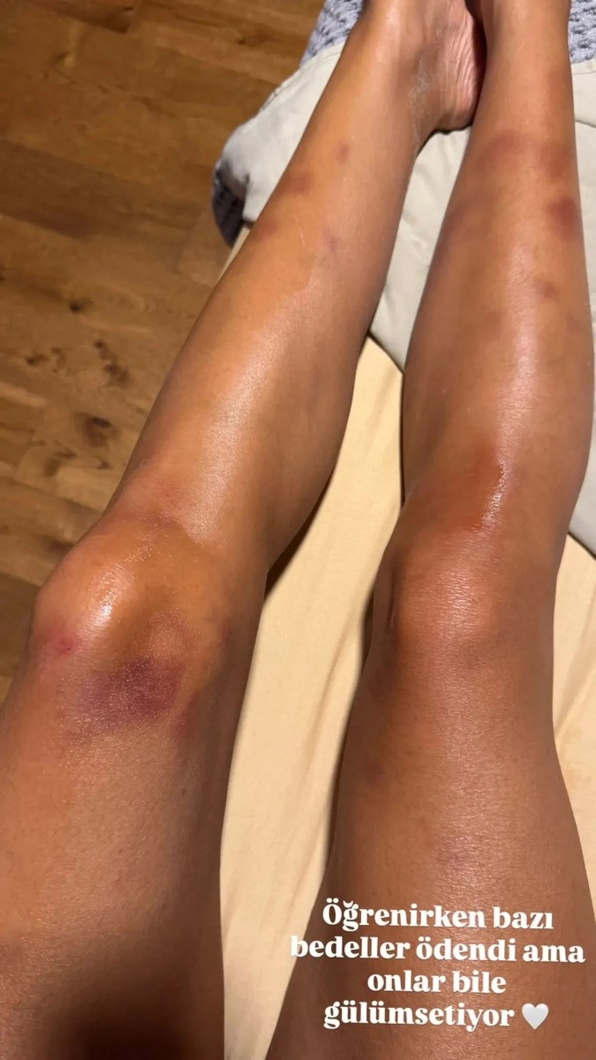Sörfü çok sevdiğini dile getiren ünlü manken, bacaklarının mosmor olduğu bir kareyi “Öğrenirken bazı bedeller ödendi ama onlar bile gülümsetiyor” notuyla paylaşmıştı.